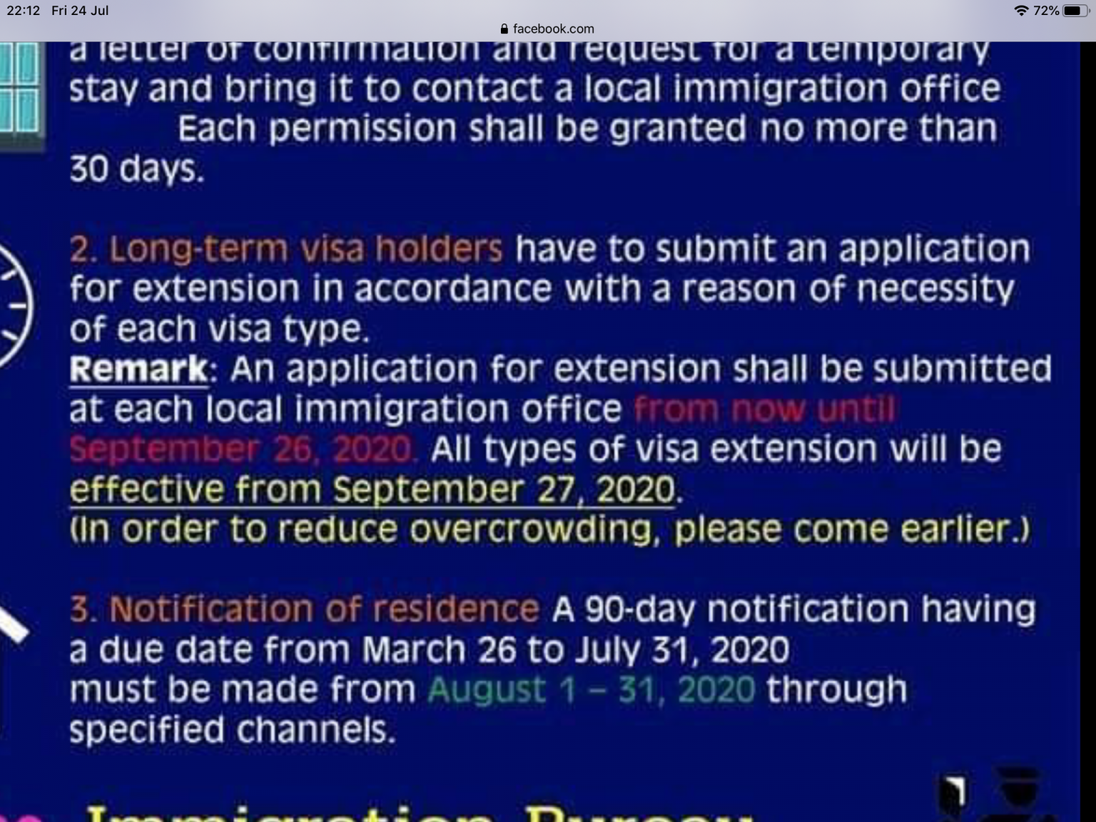 July 24, 20205 yr 5 minutes ago, jackdd said: Source for this picture? It's more confusing than their usual info graphics. At least the 90-day reporting part seems to be reasonably clear... Although, it doesn't address the suggestion in their "cartoon" of the other day that people who didn't report during the amnesty period might have to do their next post-amnesty report in person.