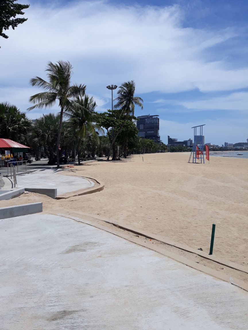 They did the same thing on parts of Jomtien Beach and Dongtan Beach a few years ago, cut down all the beautiful big, old shade trees and replaced them with scrawny little palms that are useless on a hot day. I assume this is because the City's preferred "tree provider", Nong Nuch Garden, can grow mangy little palm trees quickly, while it would take decades to cultivate the big shade trees. It's such a shame and makes the City council look stupid, as if they're completely unaware that people strolling along the walkway appreciate shade.