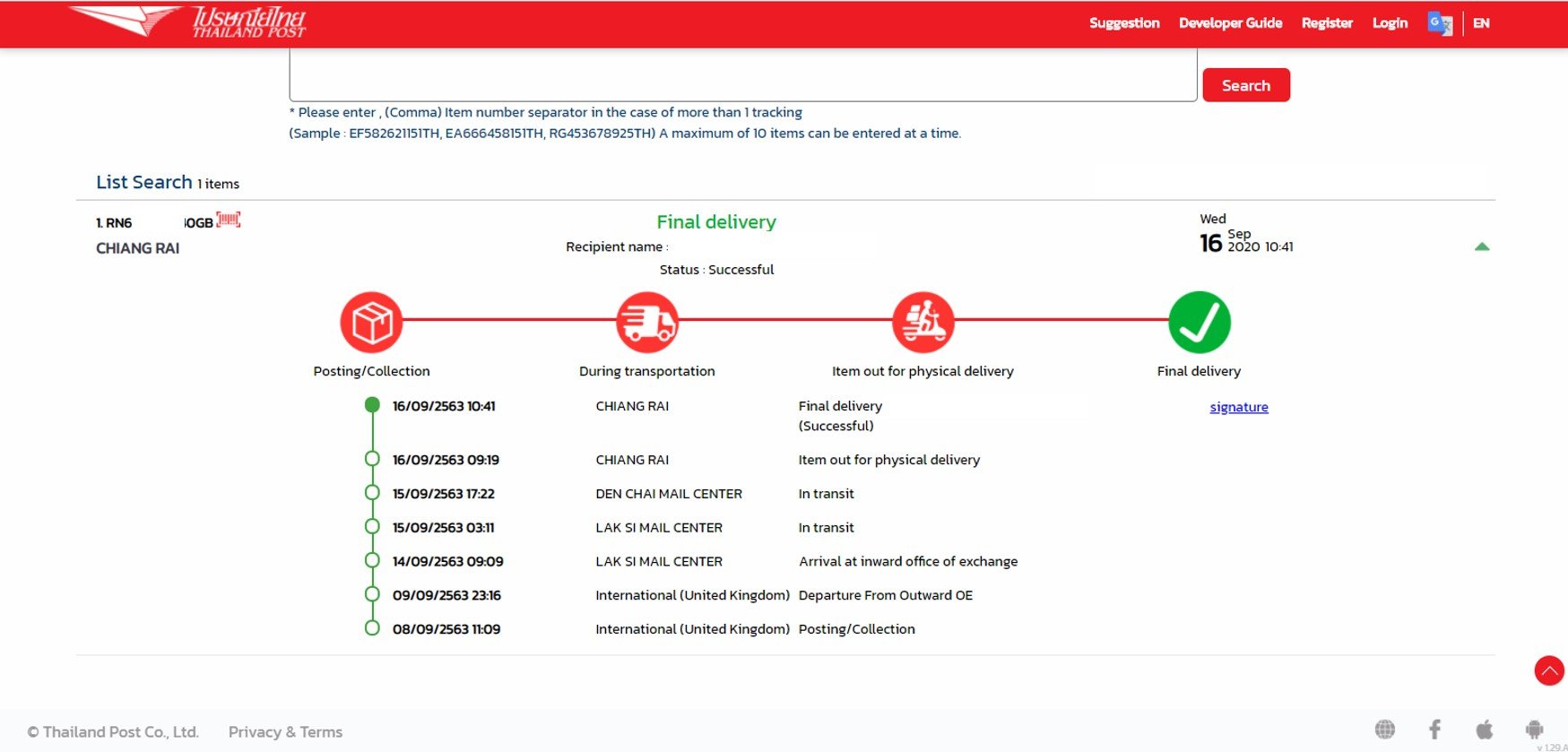 Democrats Abroad Thailand does NOT recommend EMS or ePacket services available at Thailand post offices  -- experience has shown service to be unreliable and slow.