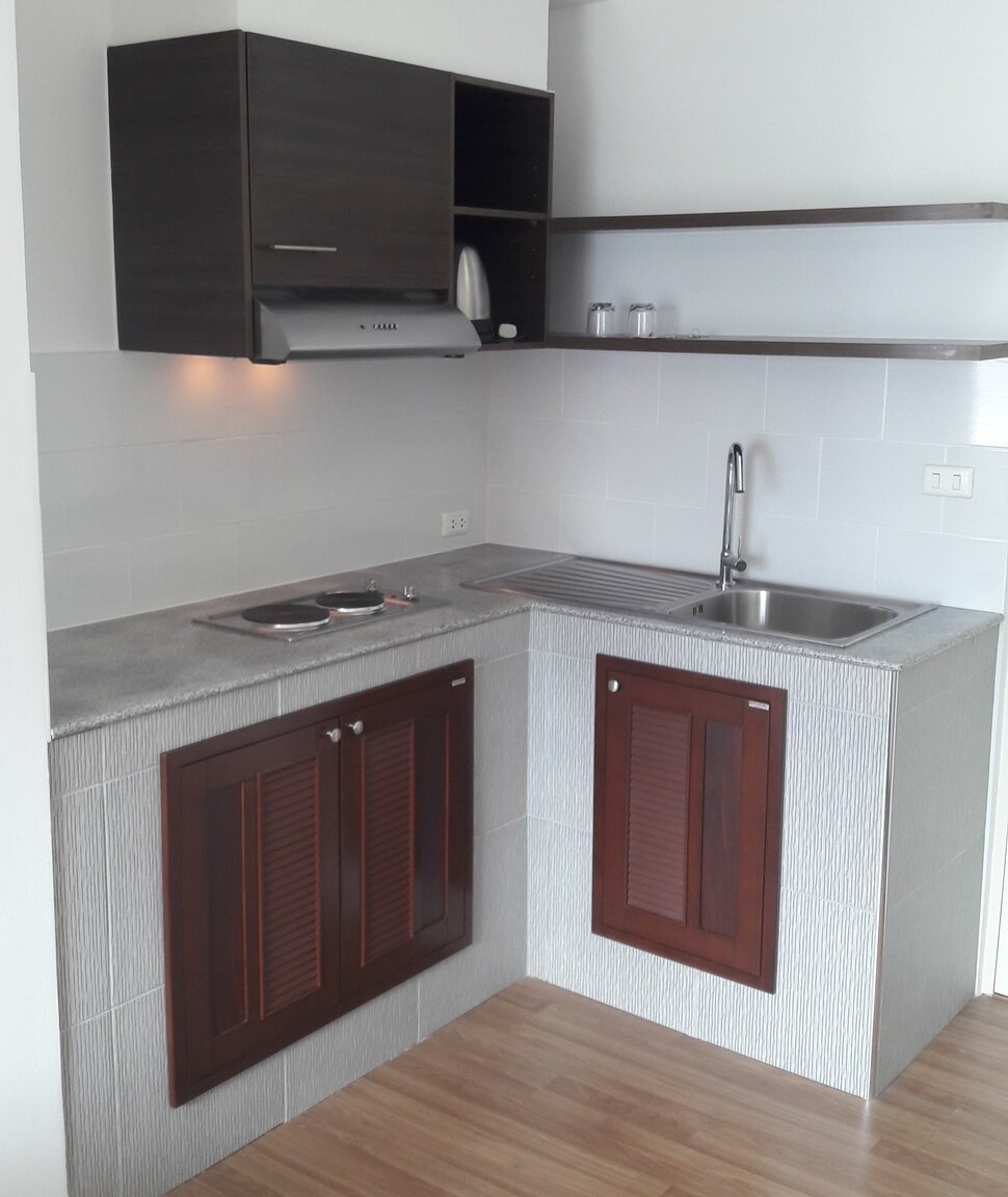 November 7, 20205 yr Author On 10/28/2020 at 4:41 PM, taninthai said: Ikea work top 2100 bht ,,couple of hours work job done.work top was 2.4 meters long so cut it in half and made to kitchen counters from it. Could not do this in my room for several reasons 1 there are hidden pipes and cables in the walls put in by the developer and although I do have full plans can never really be 100% sure even with a electric and metal detector, also no good for plastic pipes detecting and 2 want to avoid any WOOD as it only get abused by tenants and once wet is in that wood it collapses. I use granite tops with block walls and slot in the ready made units which if damaged can be easily swapped out with 4 screws.