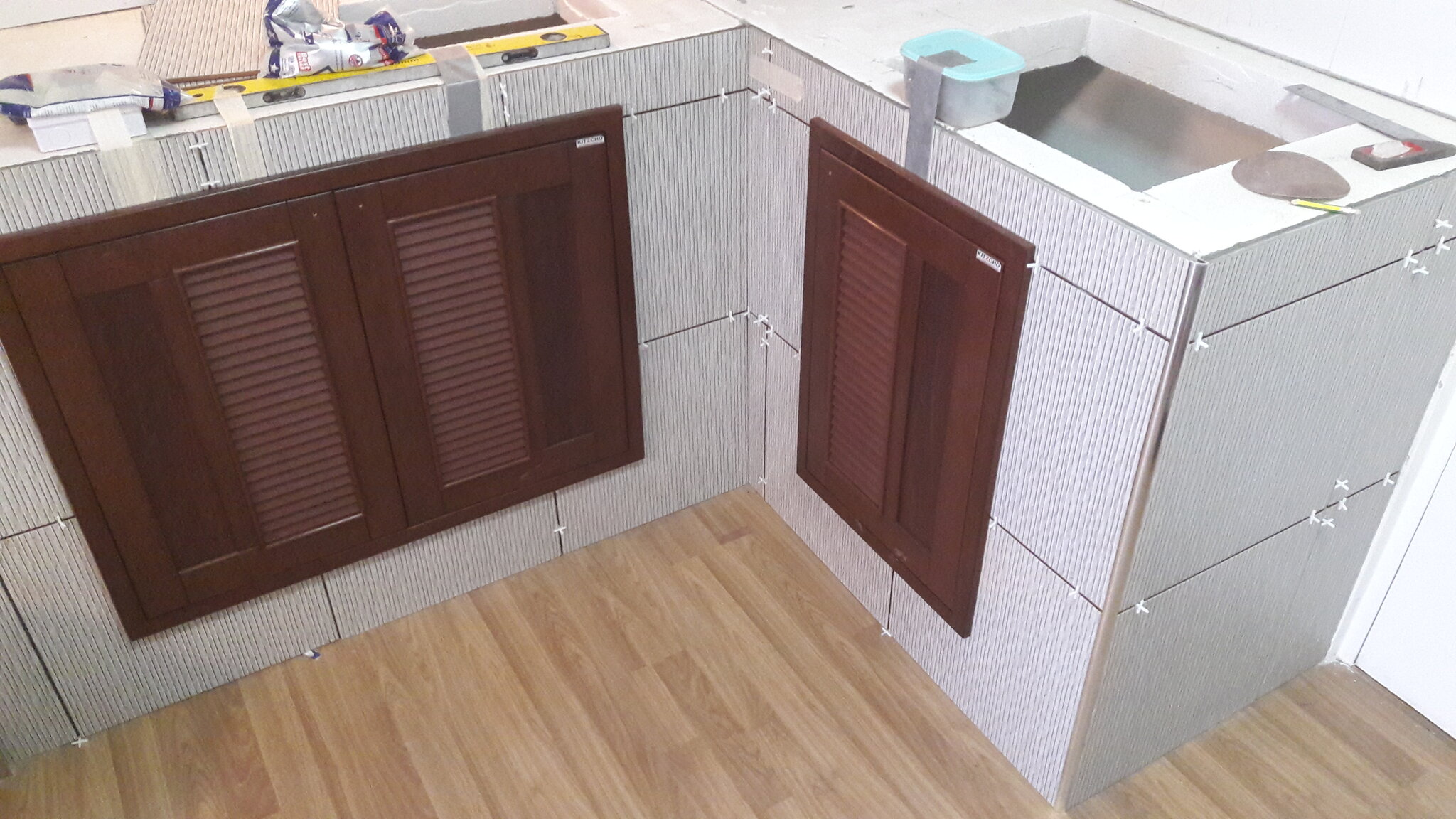 November 7, 20205 yr Author Ok so Im done with the kitchen refurb, the granite cutters (as usual) despite me giving them the hole sizes I wanted cut measured it them selves and cut them WAY too big, the hob only just fits in the width by literally 4 mm thats 2mm on each face, fortunately the retards did get the length correct so its supported ok at the ends. I even wrote down the sizes to cut for them which they looked at and discarded, once again the ONLY part I couldnt do they try and screw up which is why Ive always done all my own work. I havent used AAC before so things you need to know with these premade pieces, they label them as floor pieces wall pieces top pieces, they are all interchangeable the floor pieces can also be used as the top or sides if you want different heights to their standard 750mm , if you want to insert an appliance you do have to use their premade tops as they have an area with no rebar in so easy to cut. The pieces can be cut anywhere thru the metal as long as you dont go crazy and ;leave enough for strength, ie ok to cut off 10-20 cm in length. Whole job took 3 days (some part days) apart from stone as I let the glue set overnight on the verticals rather than risk moving them when installing the tops. The special glue looks like nothing more than tile adhesive for floors that you buy in 20kilo bags. I screwed the door s in with normal screws/plugs it held just fine, blocks are very soft have to be careful lifting to avoid damage. The only downside is you can only get 50kg bags of glue and I used only about 10kg.s worth so the rest got chucked as doubt it will keep long being cement based + thats way too heavy to lift easily