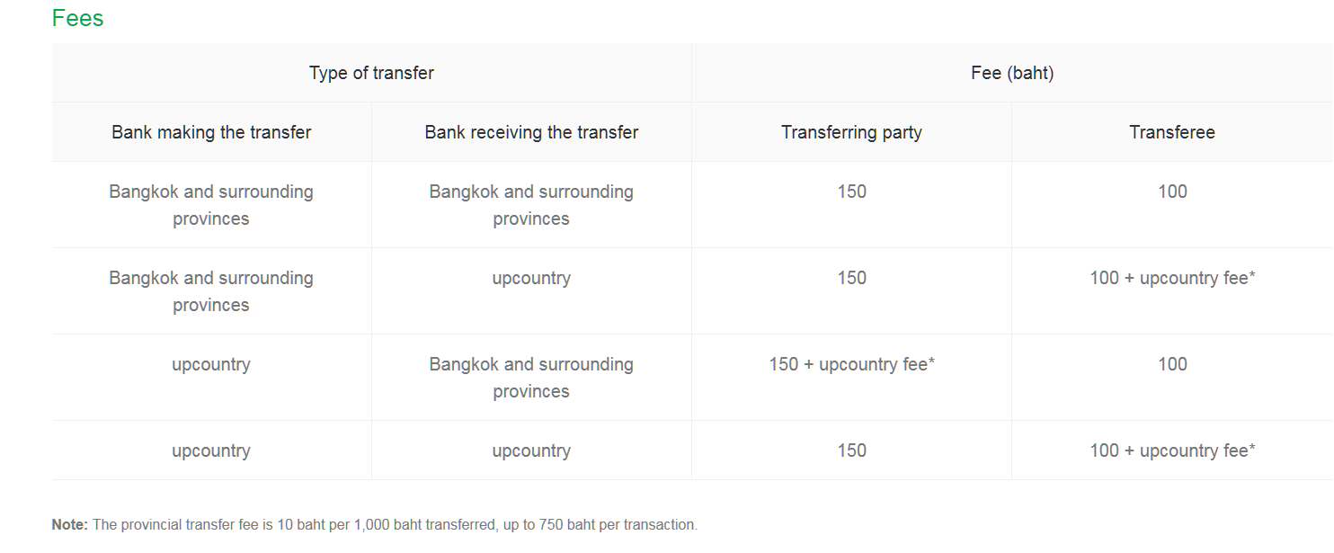 I put in for example 9,000 bht to them.  it auto configures how much it is taking from my bank to cover that 9,000.  Then it tells me the fee in addition to the amount to take 9,000. Usually like $4.00.