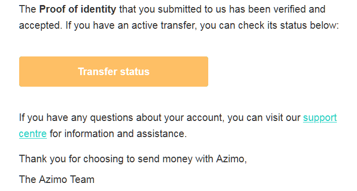 Just wait until they suspend your account without giving any reason or communicating, which PayPal is infamous for, and block all funds for 180 days. Azimo is owned by PayPal, so same flea dogs