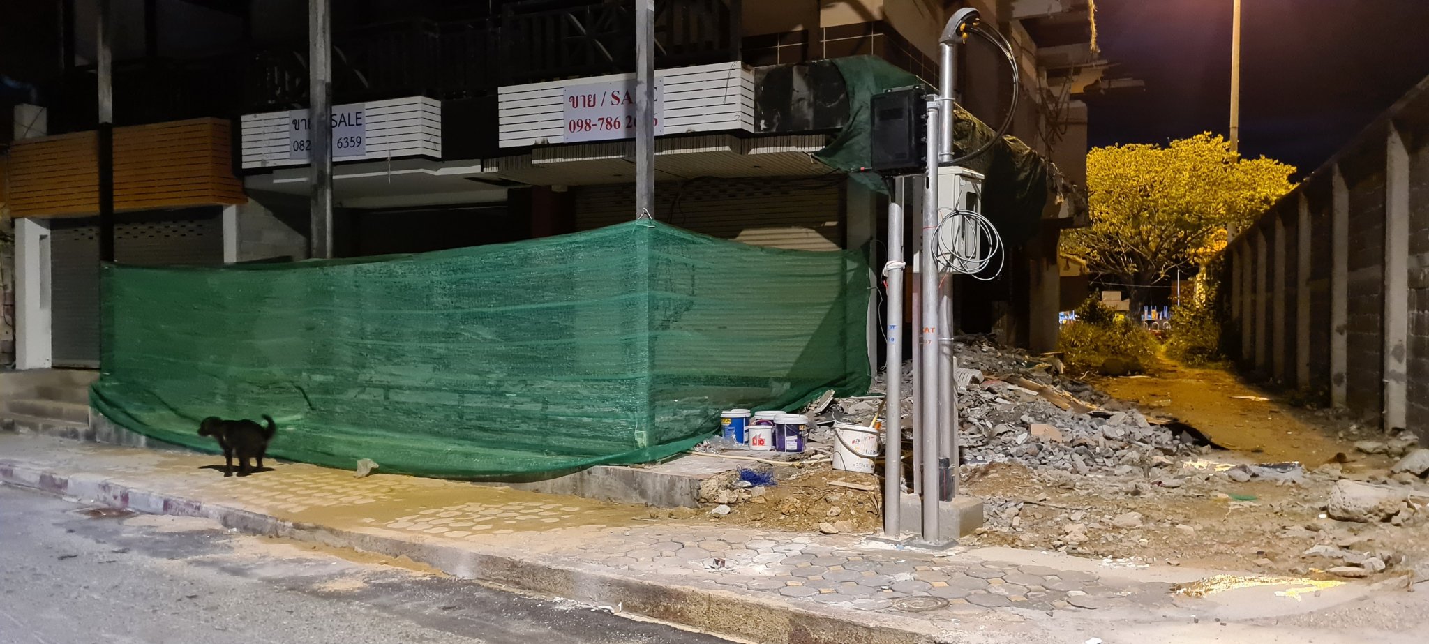 Pretty normal stuff. Snarled wires and little shops built right up to the side of the street. Welcome to Thailand.
