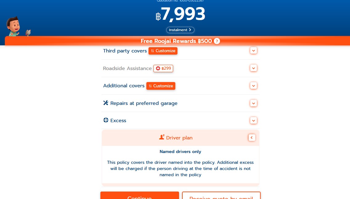 Incorrect. Roojai does do named driver. My sports lorry has myself and Mrs NL as named drivers. It reduces the premium. Insurance that allows any Tom, Dick and Fredo drive it will incur a higher premium. Also the "dealer-garage" repair option will attract a higher tab as well as accepting their 'standard' excess of (check yours) 5000 baht. If you want to make another dent in the premium, you can increase the excess to 10,000 baht which should still safely cover the most egregious bad parking scrapes and scars.