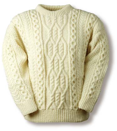 The tradition of the Aran sweater is that it originated on the Aran islands off the west coast of Ireland. When knot properly (and many are not) they are the warmest garment on the face of the planet and, believe it or not, waterproof. I still have one that was made for me by a girlfriend 25 years ago. Although I have 'grown' out of it, my wife now wears it. They can last a lifetime!