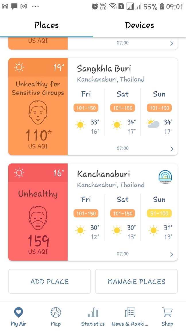 Kanchanaburi Province has had appalling air quality for weeks as the burning season is in full swing. Our local Phu Yai makes the occasional announcement to cease the crop burning but nobody takes a blind bit of notice and the Royal Thai Police appear to be totally blind as they fail to see the grey plumes of smoke from stubble burning, the black plumes of sugar cane ash or the orange glow all over from nocturnal fires. We've complained numerous times but are always met with 'very difficult, not easy to catch'.