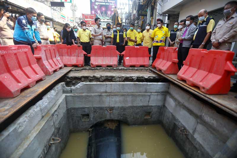 Pattaya: D-Day for the Walking Street cable burying - dignitaries all staring down a big hole!
