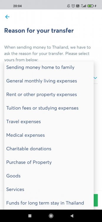 Bangkok Bank is TransferWise's preferred partner. If using this method there are two pages to advise reason for transfer. The first must me filled in. On the second page scroll to bottom; the option is "For long term stay in Thailand". By doing this it will always show as an International Transfer in your Bangkok Bank account.