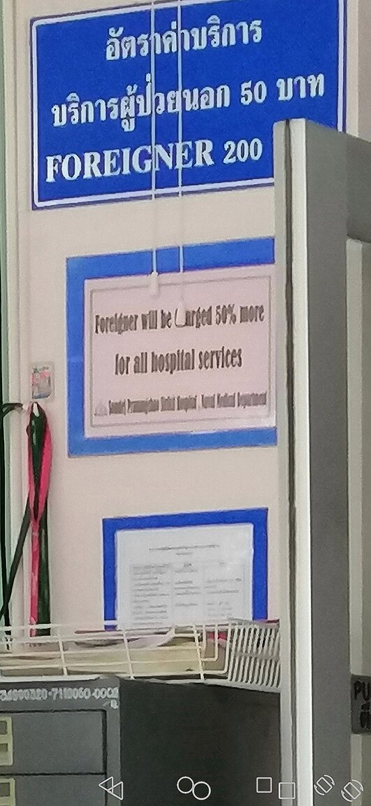 I have gone to the hospital a few times and possibly charged more but never ever said to my face I pay more because I am Falang.