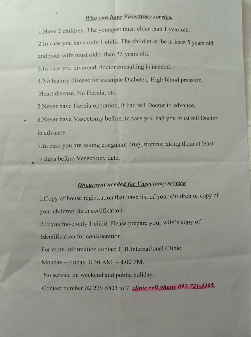 I'm considering getting a vasectomy, I tried the PDA  (next to Cabbages and Condoms)1+ years ago but they wouldn't do it as I hadn't had 2 children already and my lies weren't good enough. Where else can I go? I'm happy going to a govt hospital, I'd prefer a place that is doing them all the time rather than they wheel me in for the monthly op. Any recent recommendation and cost?
