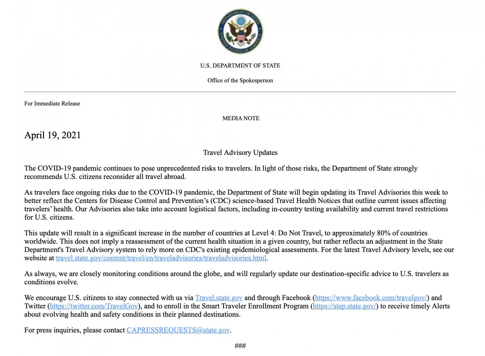BTW, I have no idea about the current policies in the U.S. on incoming international tourists, quarantines, etc.