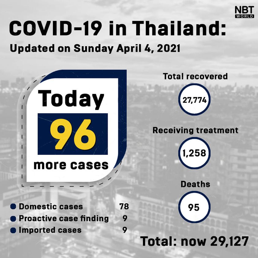 Thailand reported 96 new COVID-19 infections on Sunday.