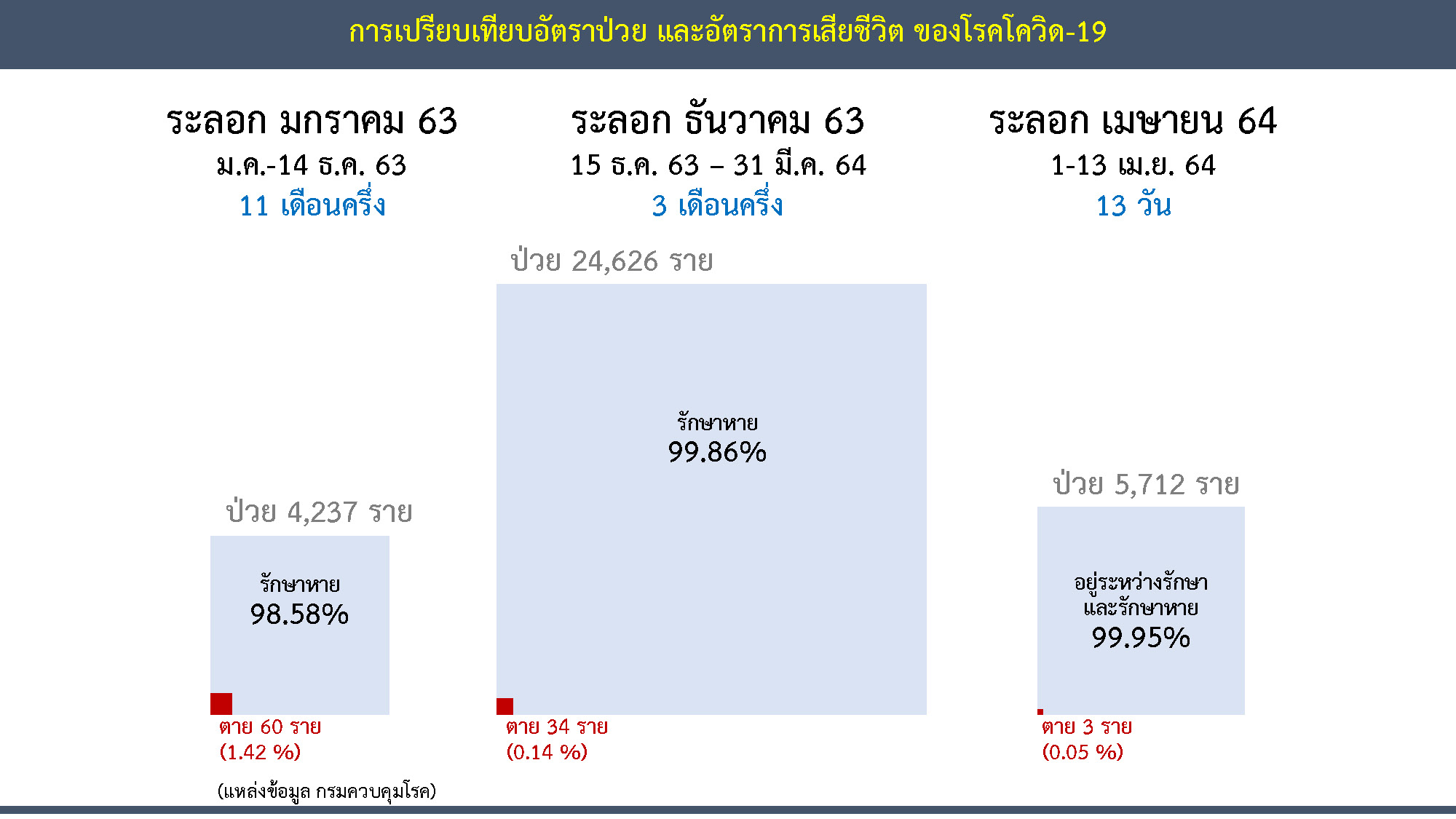 April 17, 20214 yr "The 3rd wave which started at entertainment venues in Bangkok and surrounding provinces had led to 11,722 cases and 5 deaths between April 1 and 17. The 3rd wave had spread to all 77 provinces for the first time since the pandemic began while the number of patients being admitted at hospitals because of covid had reached a “new high” at 11,916 people, according to Dr Taweesin, CCSA’s spokesman. Of the 1,544 local cases that were found in the past 24 hours, 279 were found in Bangkok, followed by Chiang Mai (140) Chonburi (99) and Prachuap Khiri Khan (58)." https://www.facebook.com/ThaiEnquirer/posts/301698257984381 Of the 11,916 currently hospitalized COVID positive patients, the government said 11,335 were in hospitals and 581 were in alternate facilities like temporary field hospitals. Under Thailand's policy, anyone who tests positive for COVID must remain in some type of hospital or alternate hospital facility until they are no longer contagious.