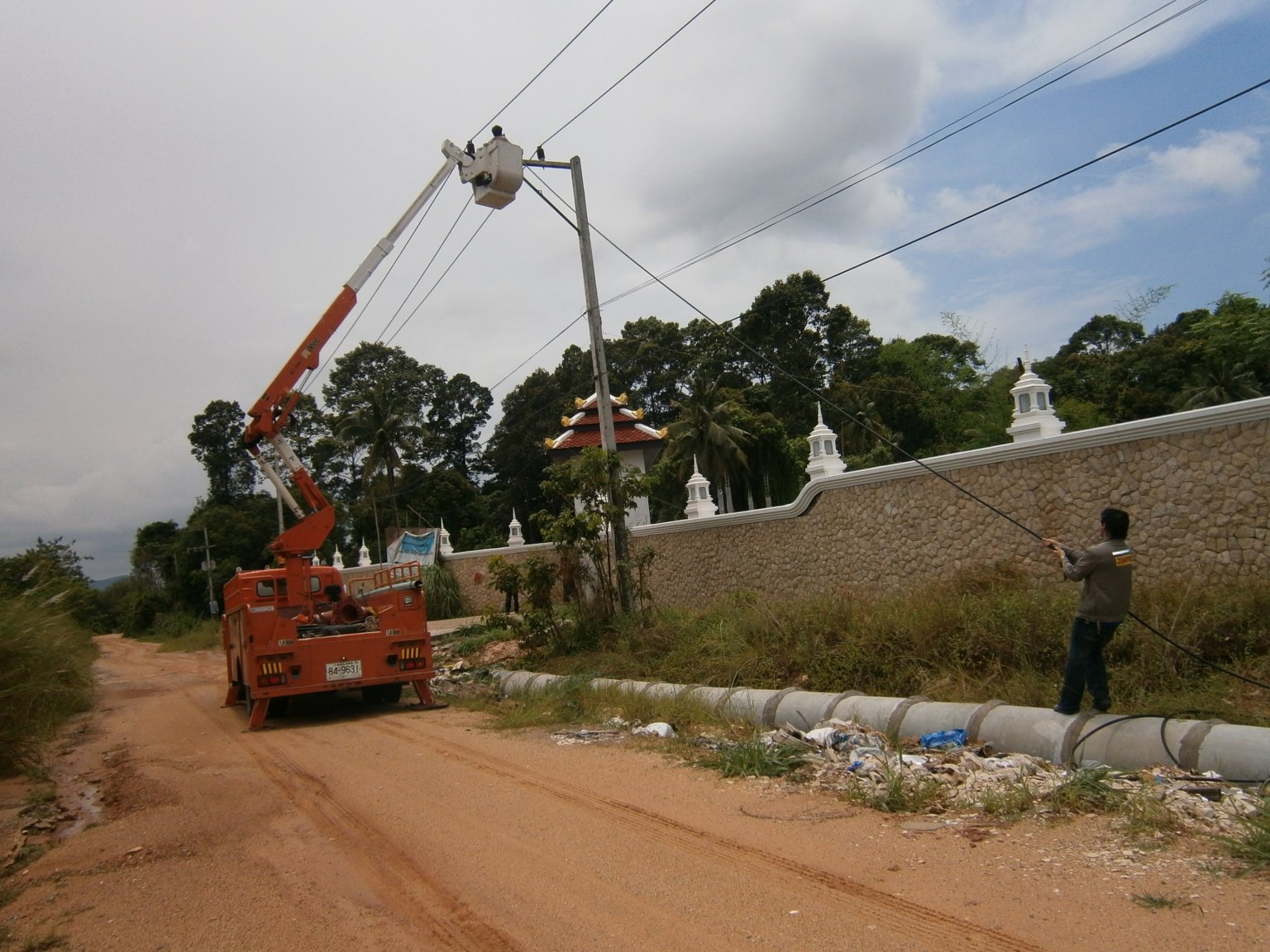 The PEA came back a couple of days latter and helped us with all the repairs free of charge including replacing all the wiring in the roof and gave us 5000 baht to put towards purchasing new light fittings etc. They also said that the owner of the land where the big tree once stood should be liable as well, but surprise surprise nothing ever came of that.