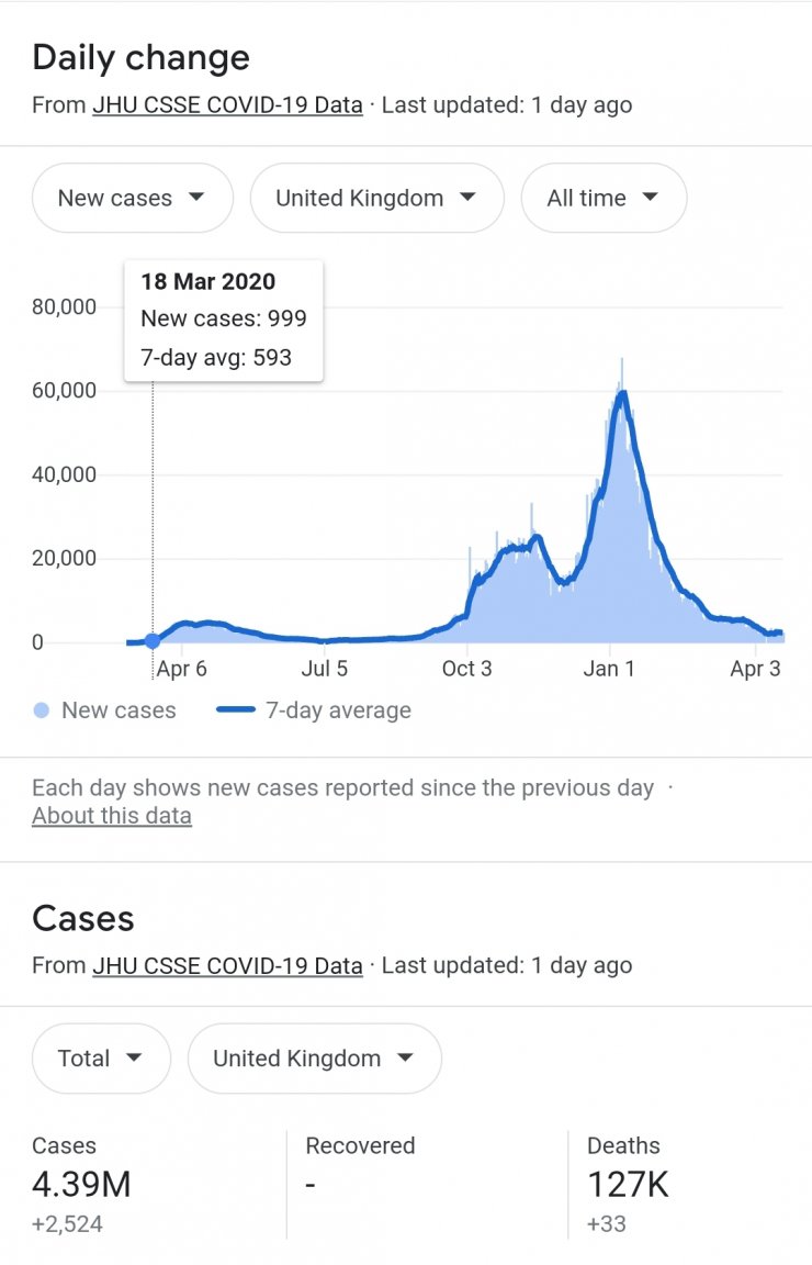 I believe this is now 3 days in a row of stable case numbers at around 1500 new infections, which is down from the recent highs of about 1800 a week or so ago. It's good to see their continues to be no sign of an exponential increase in cases from all the travel and Songkran gatherings.