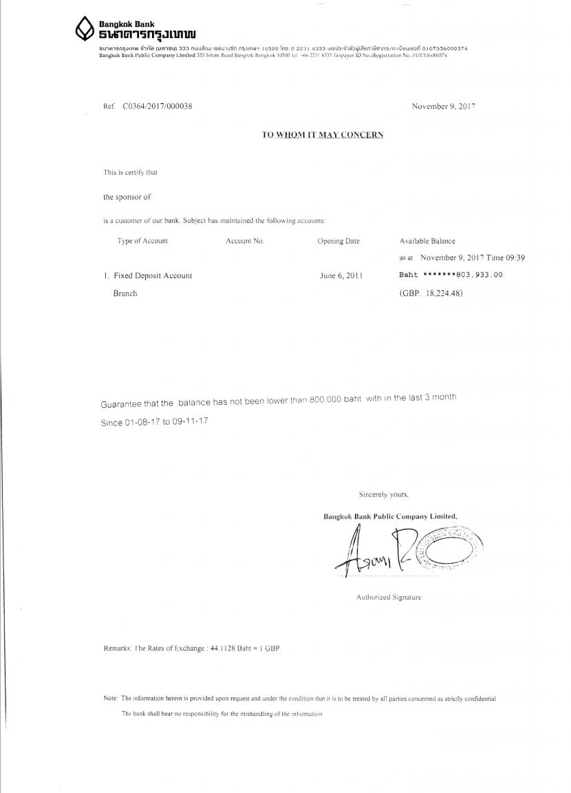 - on 4/21 I went to the bank to get the balance statement. Inspite of management insisting that the letter will only show that of the day before, it came out showing my account balance as of 4pm of 4/21 ie up to the last minute! I also did the 100 baht deposit to show "activity" (then later realized that the "activity" needs to be done on the day of application.)