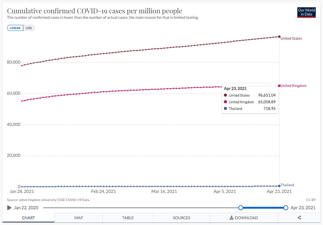 You are a lot safer here in Thailand than in the Uk (if you believe their figures). 130,000 dead in the UK, 100 here.