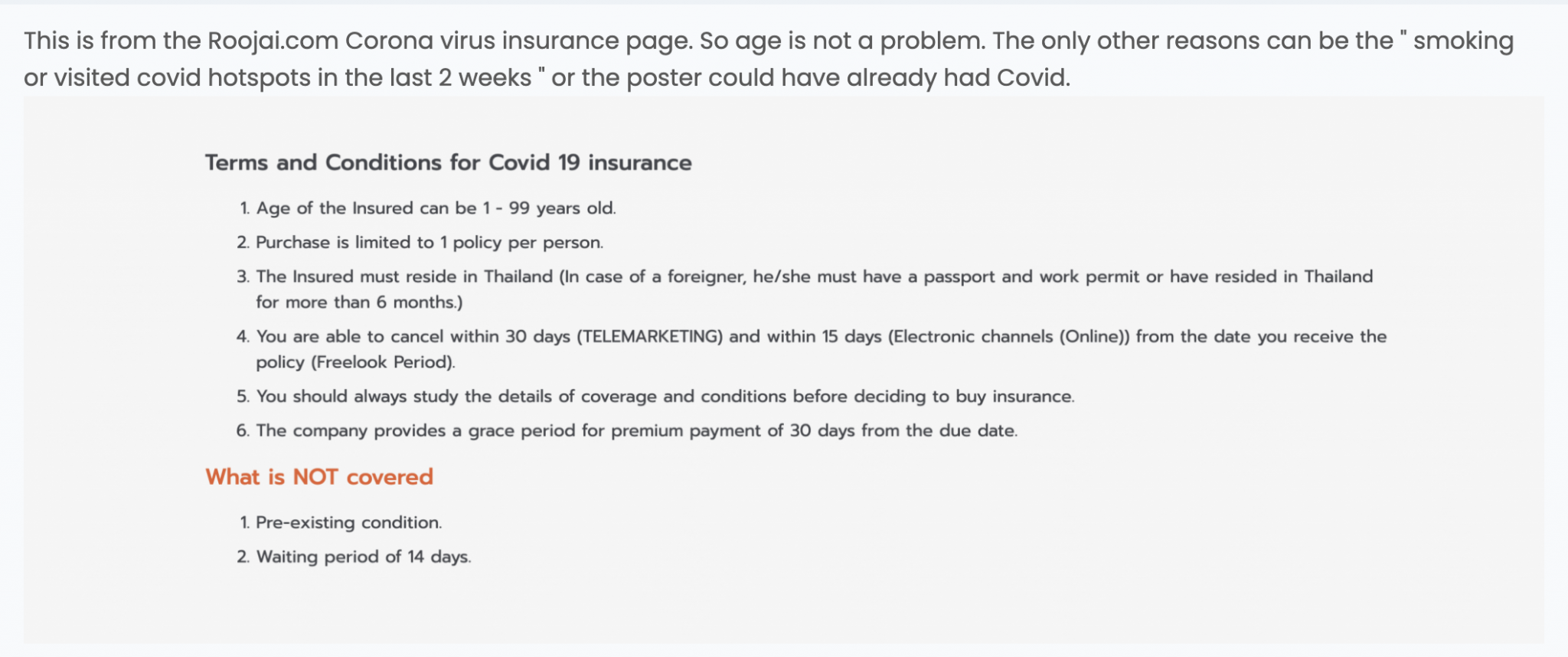 This post concerns insurance coverage for COVID expats already in Thailand and not the mandatory COVID insurance for people newly entering the country.