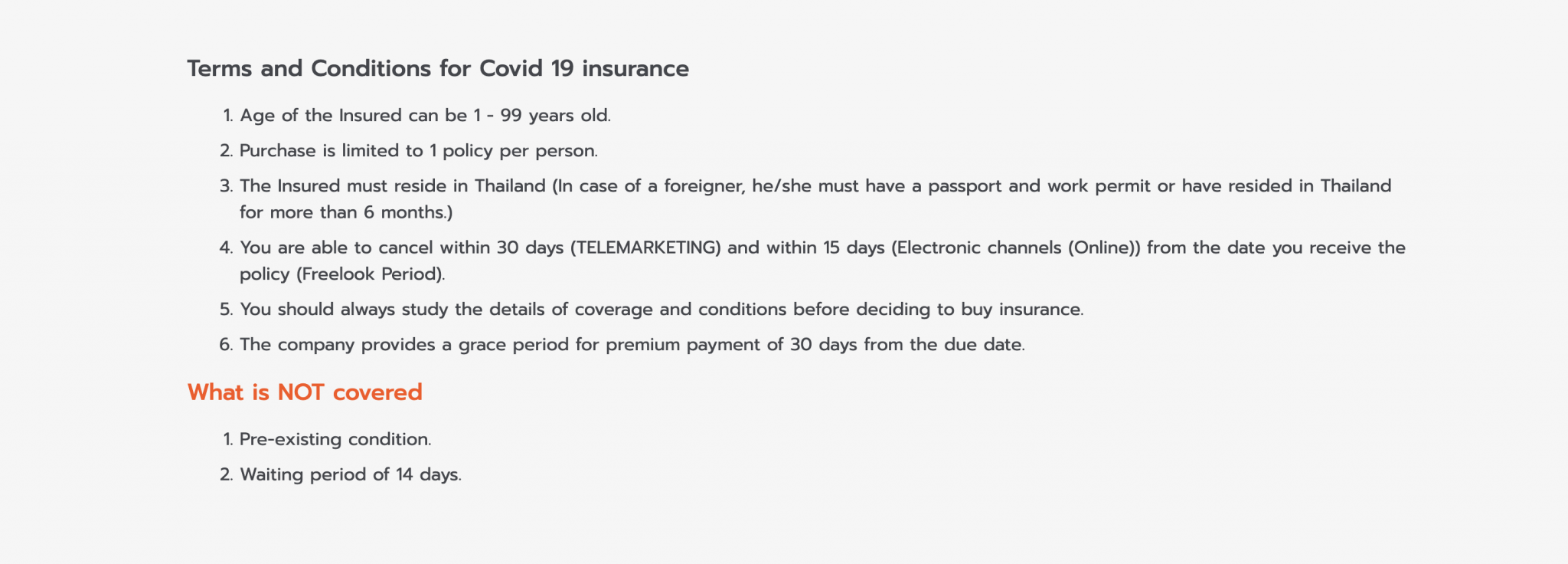 There are several COVID specific policies currently available to expats living in Thailand, from Thai companies, as follows in alphabetical order