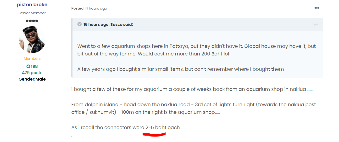 Went to a few aquarium shops here in Pattaya, but they didn't have it. Global house may have it, but bit out of the way for me. Would cost me more than 200 Baht lol
