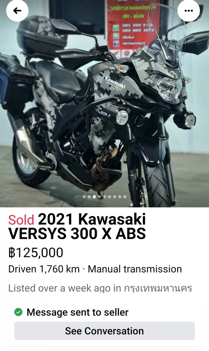 June 20, 20214 yr Author 22 minutes ago, Agusts said: https://www.facebook.com/marketplace/item/1882026388614312/ This looks nicer to me, green 2018 and 6k km, and 89k baht..., if still available.... ! Thank you ...... yes it does look good. They were one of the dealers who seemed to be more interested in offering loans than selling bikes, but I'll try asking them again.
