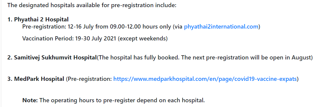 Vaccine registration in Pattaya area.(Expats)