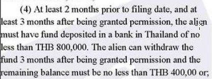 • It is not a problem with the 800k being in the bank for 2 months. He used an agent and has no proof the 800k baht was kept in the bank for 3 months after the application was done and then 400k ba