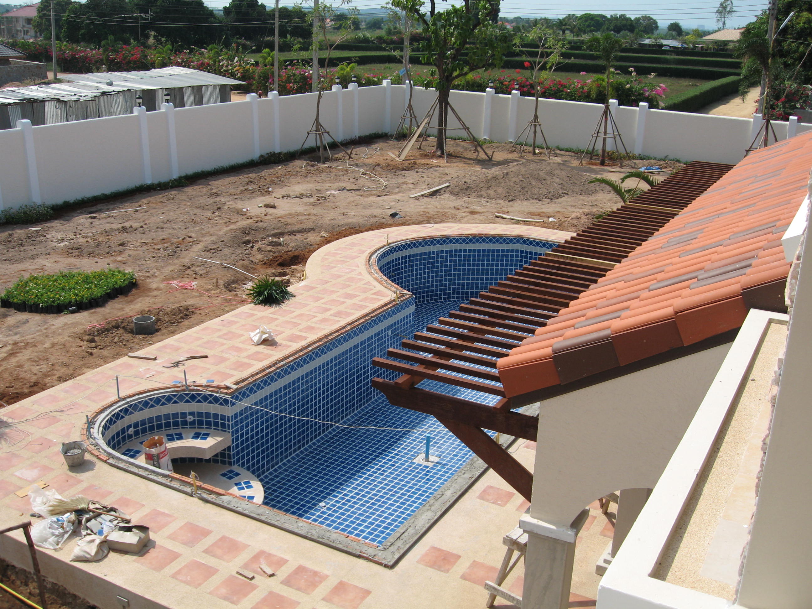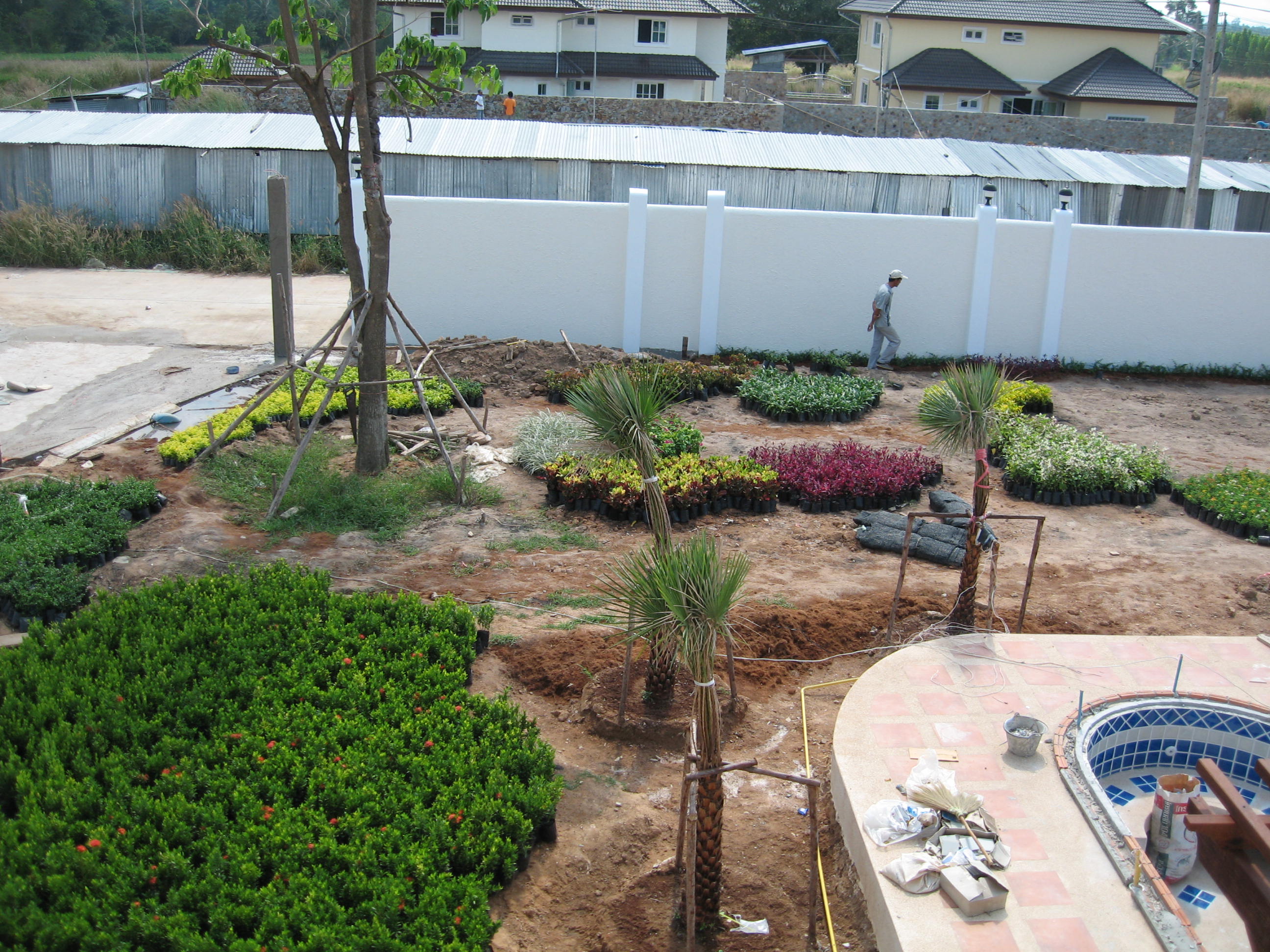 Pool and garden going in. Never and I mean never say to your best Thai pal " Oh plants yeh.just buy what you like. " 1700 of the ###### things arrived on one day !!!