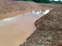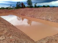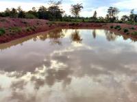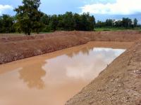 The pond is finished and I did do as Tilapia suggested and did build a dike around the pond. It is several meters from the actual pond bank and over a meter high. It is wide enough to drive on. I elevated a road from the farm access road to the pond and the majority of dirt is piled at the end much higher than that road to facilitate hauling some dirt out at a later date. I was disappointed that the pond ended up about 4 times longer than it is wide and it is rectangular rather than oval shaped. Maybe they are smarter than I am and did it for a reason. ??? To prevent any misunderstanding before they started, I gave them a mango and told them that I wanted the pond shaped like the mango. That DIDN'T happen. My wife had told them that if they did a good job she would give them four bottles of Lao Kao and two ducks. They didn't get anything other than an earful from her.