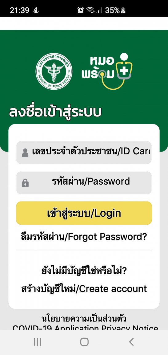 Thank you. So why does the Mor Prom app ask for a Thai ID number just to install the app. This is my problem. I can NOT install the app without a Thai ID number!  I notice your image shows English language writing but my installation file is in Thai. None of the nurses or staff at BPH could work it out.