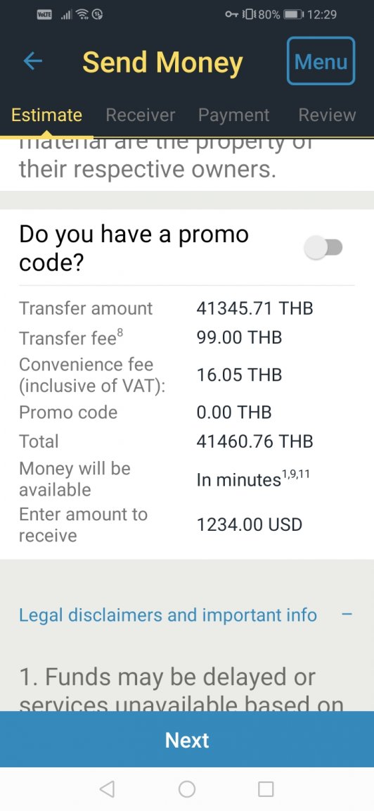 Money is now added as baht (or a different currency if you selected a different wallet), and you can sent it to anyone in the world...