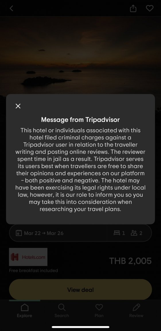 Thai hotel threatens customer with ฿3m lawsuit over bad review