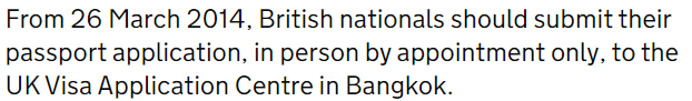 I was going by the last page after going through all steps on UK overseas passports page for Thailand.