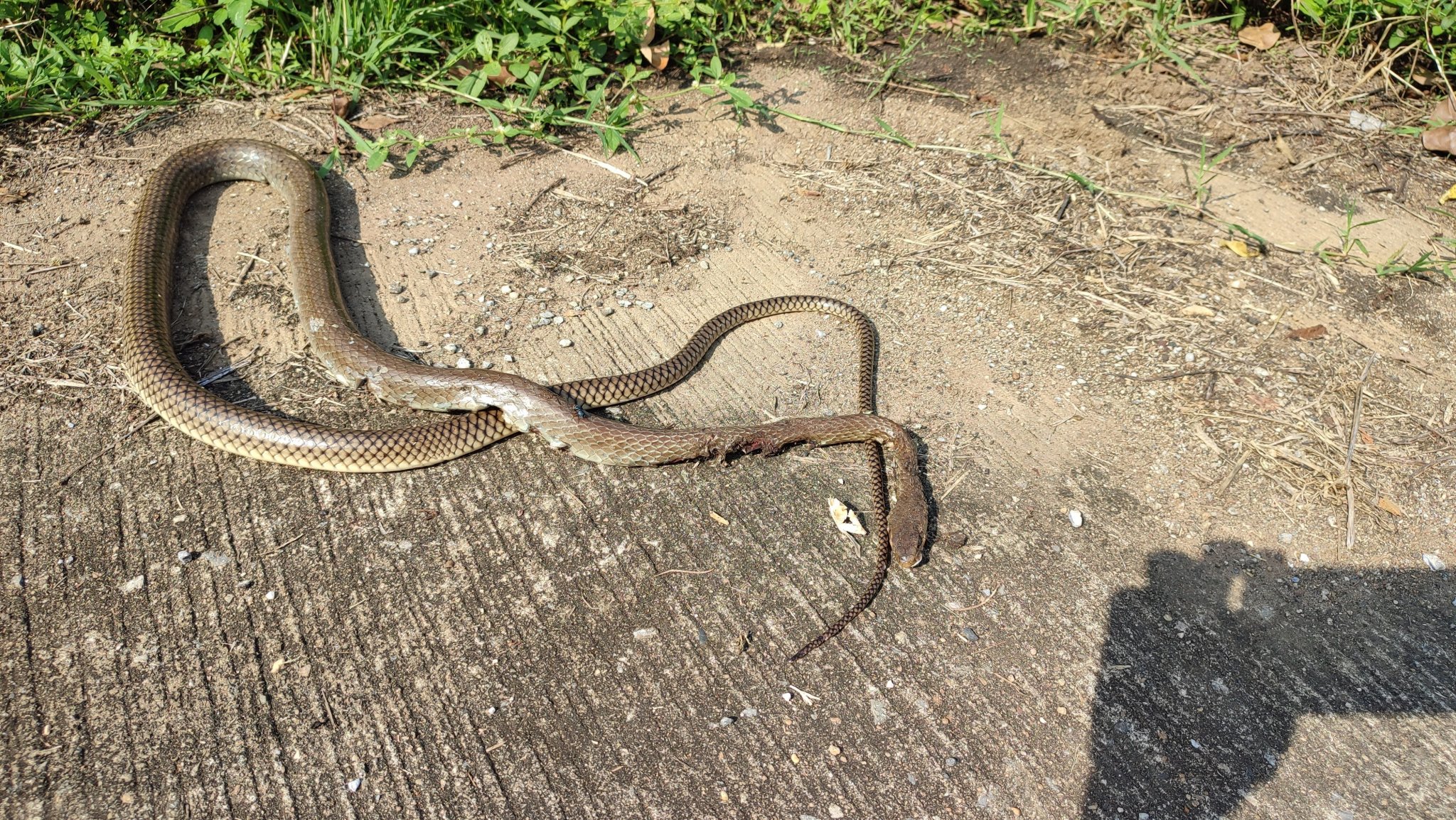 We had a snake looking a lot like that slither across our patio and park in front of the aquarium.