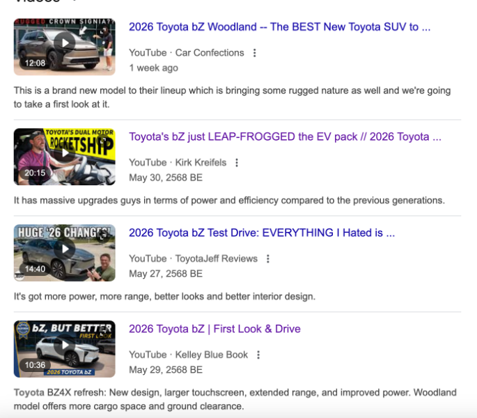 August 13, 2025Aug 13 4 hours ago, josephbloggs said: I either mentioned here or in a different thread that I am working on three TV commercials for the 2026 bZ for North American market where we needed to create the car in CGI and place it in to live shoots as the car wasn't available to shoot with. So I have spent a lot of time looking at it and I kind of like it but that's probably just due to familiarity and let's face it, even looking at a dog's dinner would be an improvement on the outgoing model with all that nasty plastic. As part of the process I've also had to do a lot of research and have had a lot of discussions with Toyota product people and it is definitely a marked improvement in terms of tech, battery, and performance. They also moved the charging port to the opposite side and adopted the Tesla charger which is probably quite handy in America but not really here. It is also getting rave reviews stateside but I put that down to the paucity of choice over there, for me it is nowhere near as good as many of the Chinese models. There are going to be a range of bZ models like an offroad type ("Woodland") and other SUVs in different sizes (probably bZ1, bZ2, bZ3). I am wondering how they will price it here, the old one was ridiculously expensive. There is absolutely no mention of the car on the Toyota Thailand website - they really are hopeless. If it is priced competitively they'll sell a few as it isn't bad and there are many old farts in Thailand who still believe Toyota is the best so brand loyalty by morons will count for something if it is reasonably priced. Time will tell. I definitely wouldn't buy one personally. That explains why the tires were falling off ... 👍