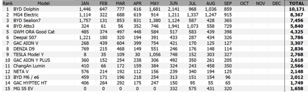 Total new BEV (100% electric) vehicles in Thailand registered/sold during Jan-Sep 2025.  See weblink below for full 17 Oct 2025 article from autolifethailand.   BYD is still the 800 pound guerilla with the MG guerrilla weighing in at around 400 pounds.
