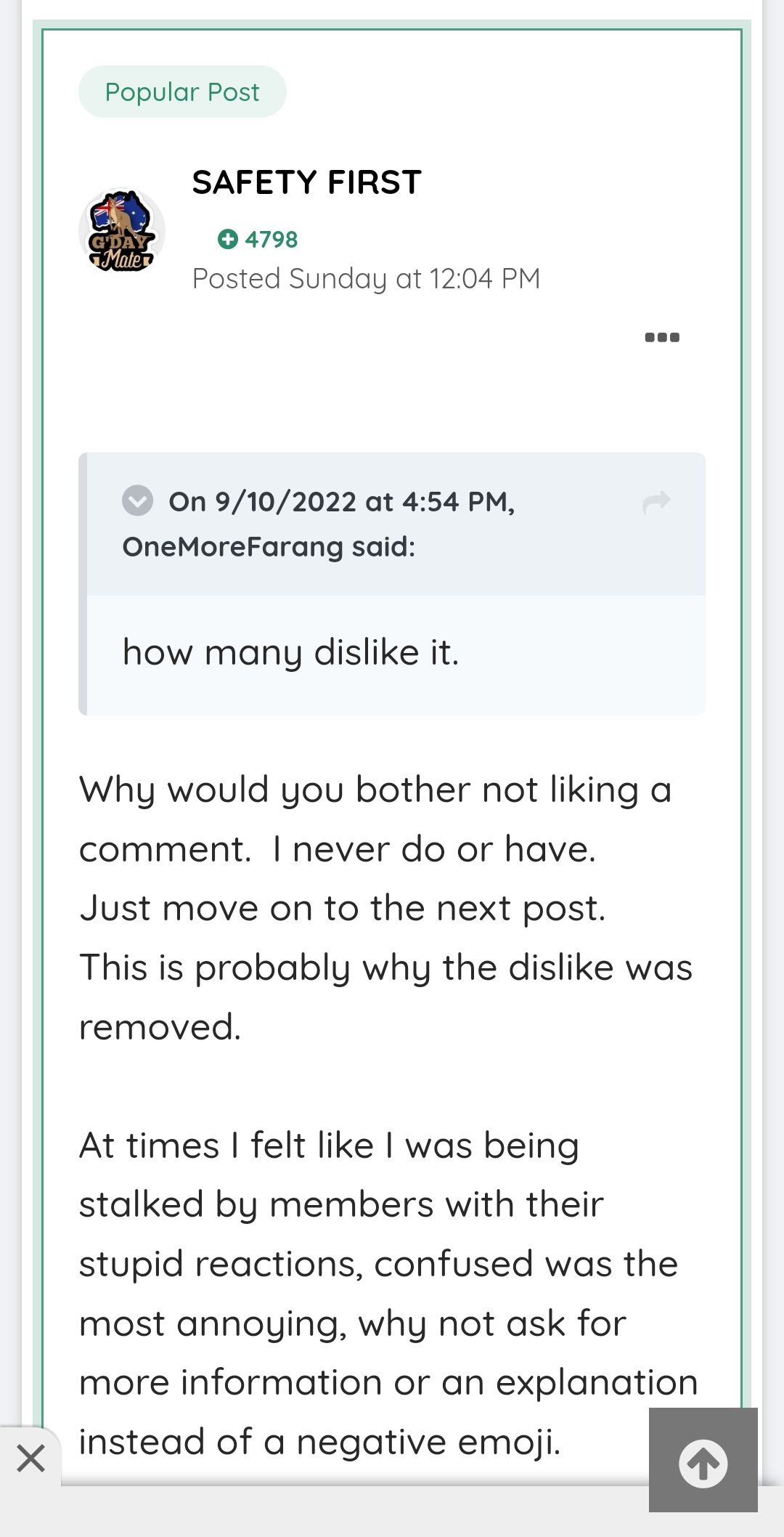 At times I felt like I was being stalked by members with their stupid reactions, confused was the most annoying, why not ask for more information or an explanation instead of a negative emoji.