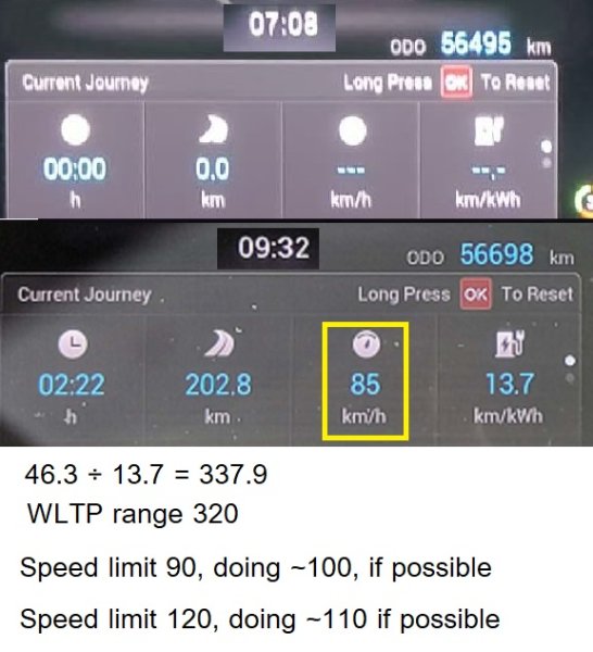 Popped up to Hua Hin Monday, ~200 kms R/T, using ~60% battery, leaving @ 100%, returning @ 40%.