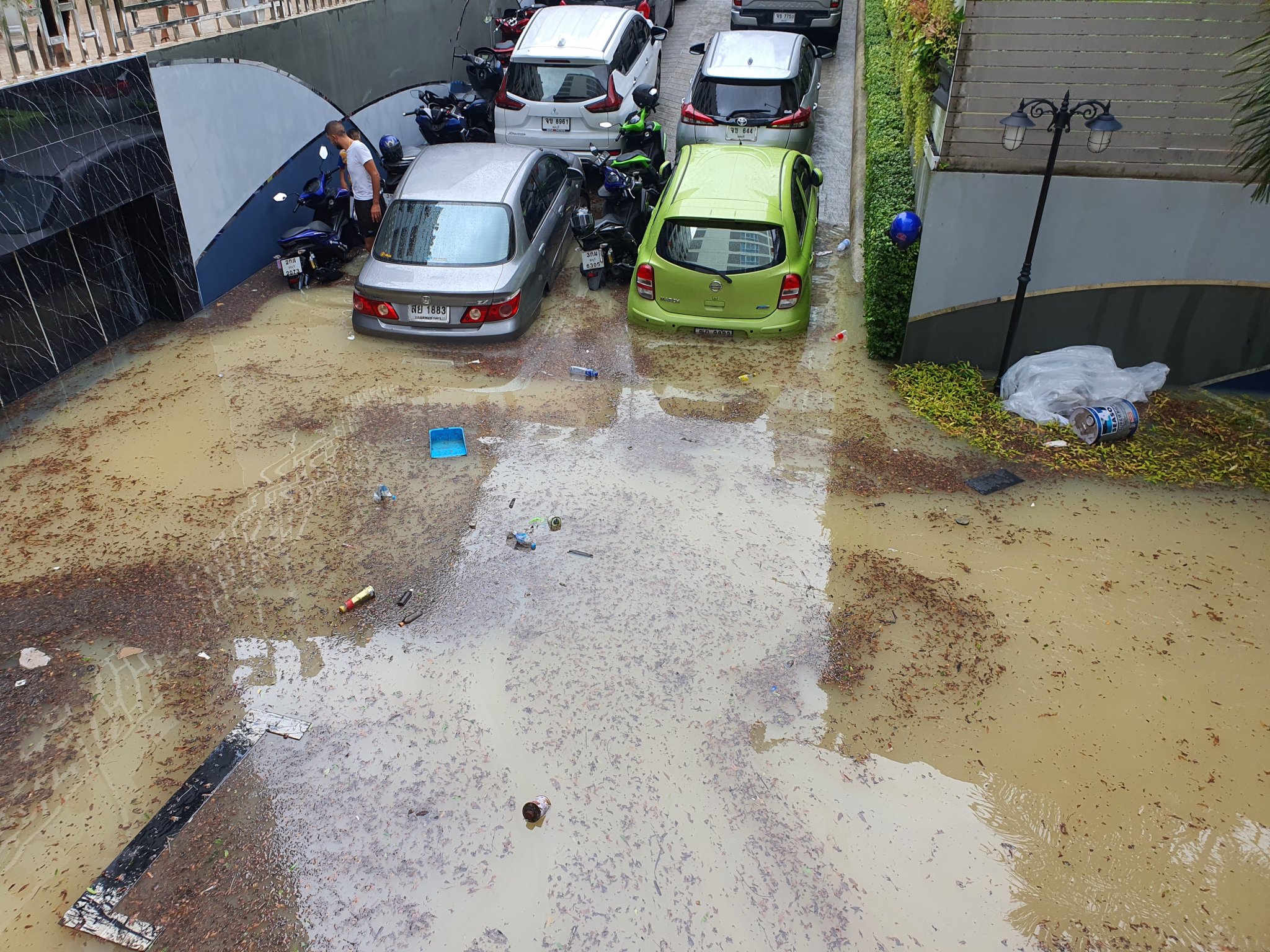 Minimal flooding only occurs Darkside when the water is running downhill to central Pattaya and accumulating the rubbish from a thousand drains.