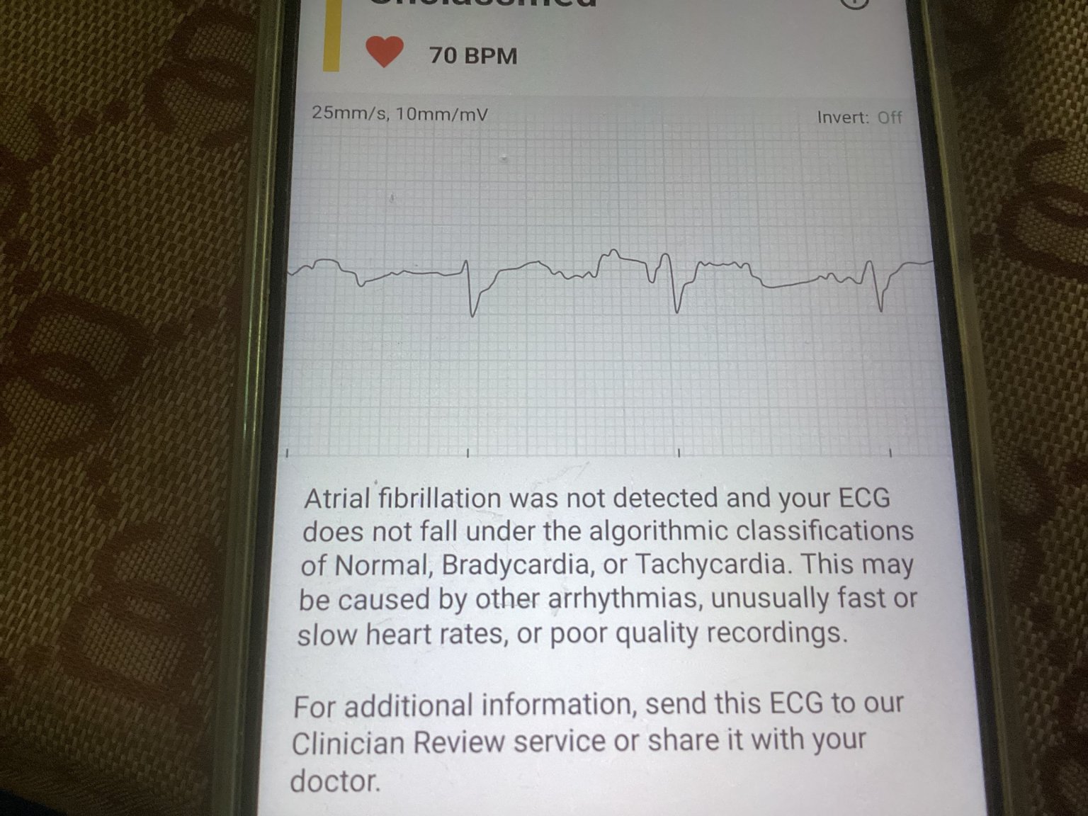 The odd thing is the odd thing is that I have often been feeling very unwell. So the last couple of days I have taken readings on my cardiamobile device, a single lead EKG for the first time ever I have had a read out… Well, you can read it.  For the first time  since the beginning of this saga is me it tells me AFib is not detected.IMG_1293.thumb.jpeg.94a238e6811e4b36119e5635ca854b15.jpeg