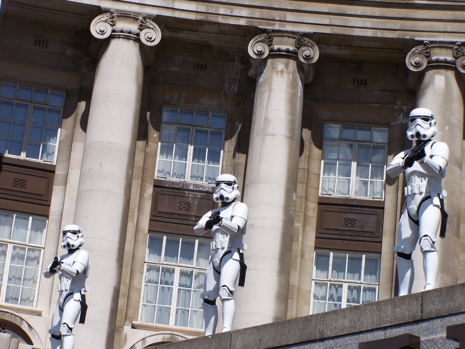 Eek....there was some star wars school for kids happening in london at the time...and i think thats why they had these things standing atop the roof (different roof to the tigers though :D tigers in Munich.......) they looked really cool and quite real...my friend who works in graphic and web design wants to steal the image for some of her work :o