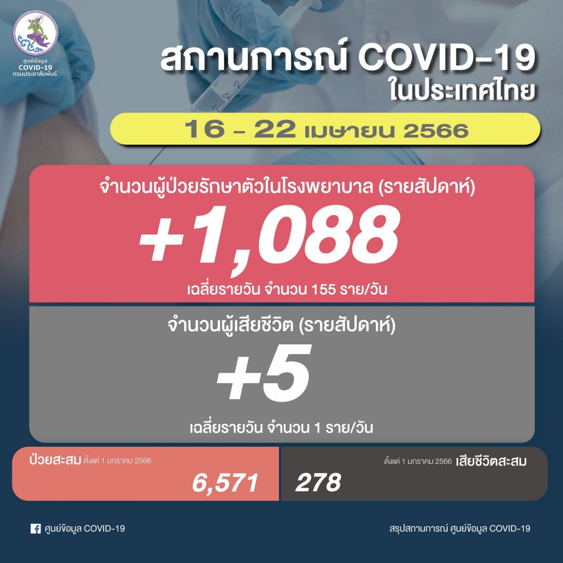 Now 278 COVID deaths and 6,571 COVID hospitalizations in Thailand since the start of the year.