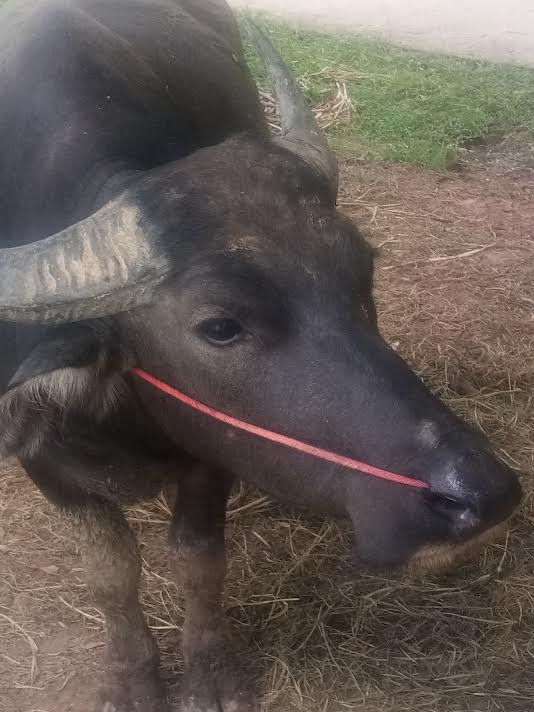 For several weeks now I have been talking to a water buffalo. I first noticed him tied to a tree on a long rope next to the path that goes around the lake where I take my morning walk. He is separated from his comrades and just stands there for most of the day alone. At first I just stood there for a few minutes and spoke a few words which made him timidly retreat away from the path while he looked at me. Gradually I stayed longer. Eventually I sat on the raised concrete path with my legs in his 'territory' and spoke to him for 10 then 20 then 30 minutes, each day he would come closer as if listening, much to the amusement of any locals who passed by. Now he comes so close as to press his wet nose on my arm giving out loud but gentle puffs of his breath on me but he wont let me touch him, he shakes his enormous head if I try. This morning was a delight, he saw me approaching from afar and immediately ran from the roadside up the slight bank and waited for me next to the path, he almost seemed excited in his own quite way. We settled into our daily routine, he blew copious amounts of buffalo breath on my head while I told him my household news and stared into his beautiful black eyes. I know there is a consciousness there, not just a dumb brute who could crush my rib cage with one side sweep of his massive horns but a fellow sentient being with feelings.