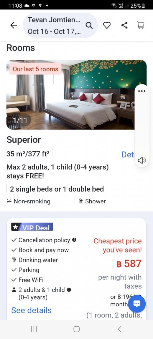 I start the process of booking a hotel via Agoda, in Jomtien.