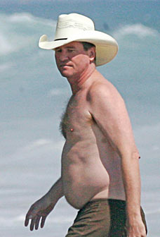 Here's a picture of has-been male acTOR Val Kilmer... seems he's had a few orders of fries lately. Not that I'm necessairly the picture of health, but if you're a celebrity, and you voluntarily go out in public, you can be sure the paparazzi will be there to memorialize it all.