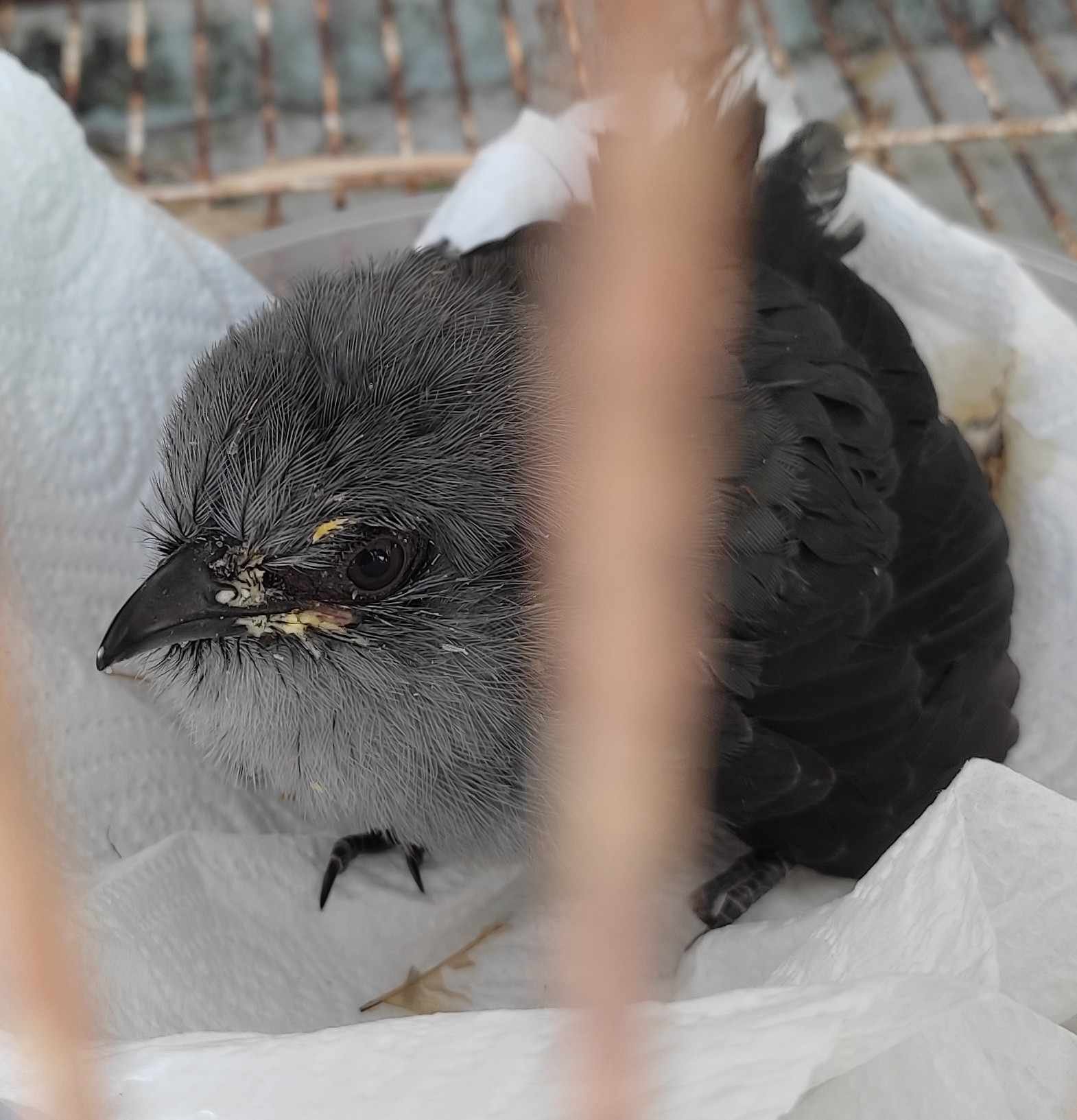 We found this baby bird this morning and we heard him yesterday calling for its parents but