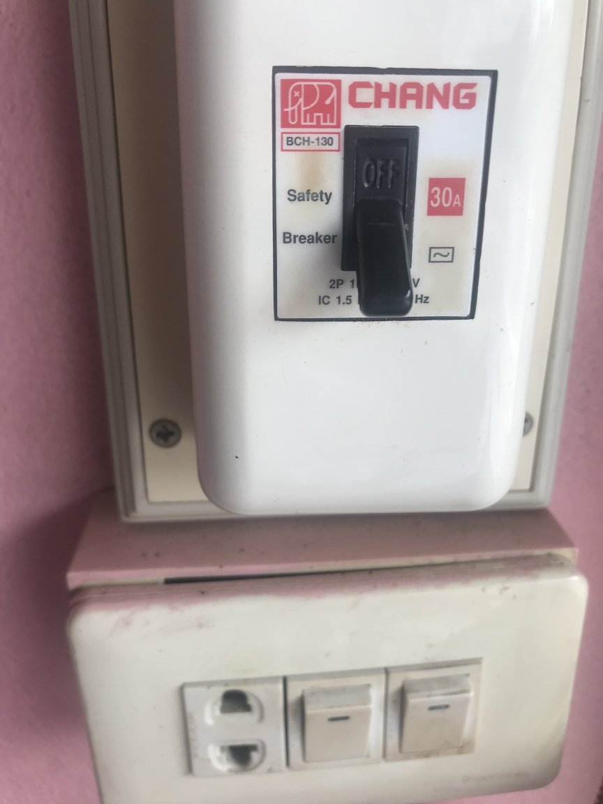 This one is a C10, meaning breaker switch (shortcut)10 A with C-characteristic, most common in Thailand. IF you find one with a B, it is even better. NO other letter of alphabet !