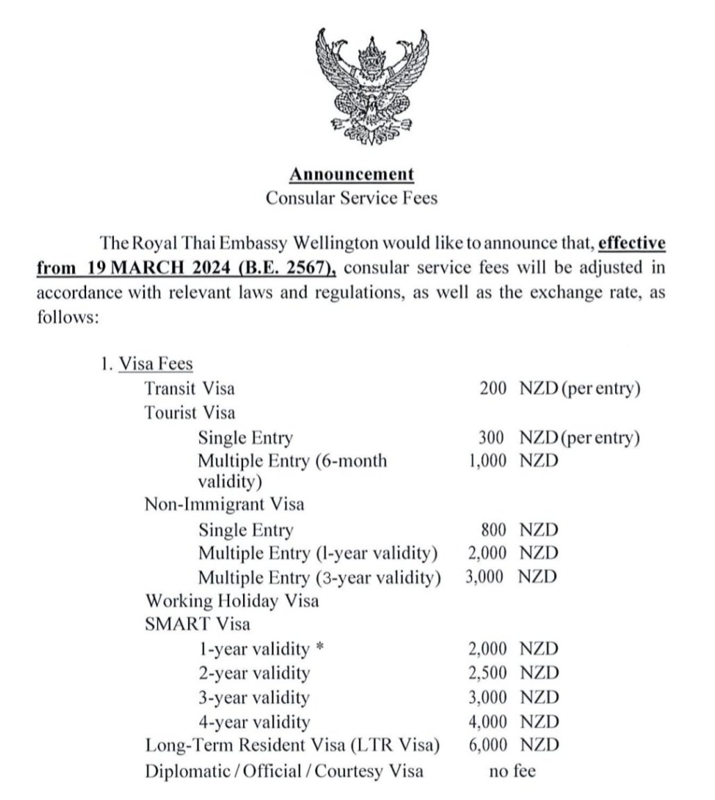 Thai Embassy in New Zealand increases visa fee 600%
