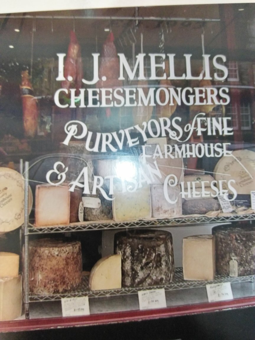 Photo is a cheese shop in St. Andrews, Scotland. It has duckboards with running water underneath, to keep the cheeses moist.